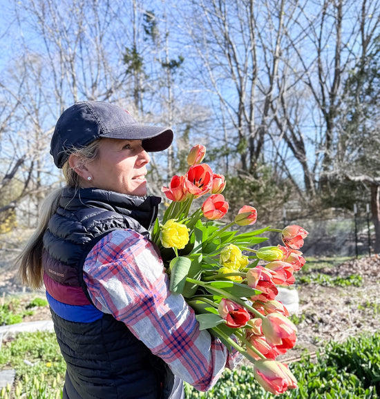 Hi there! We're Lisa and Shira, the girls behind Berkin Flowers. We're here because we love crafting vibrant florals from the ground up - getting our hands dirty in the soil, digging and dividing dahlia tubers, hand-selecting market blooms, photographing flowers, and designing distinctive, seasonal floral creations that resonate with our amazing local customers.